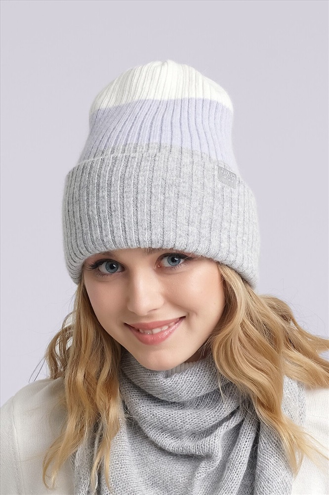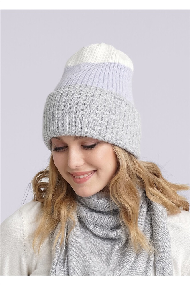 Женская двойная шапка с отворотом , декорирована нашивкой логотип в височной зоне. Подойдёт для холодной зимы.