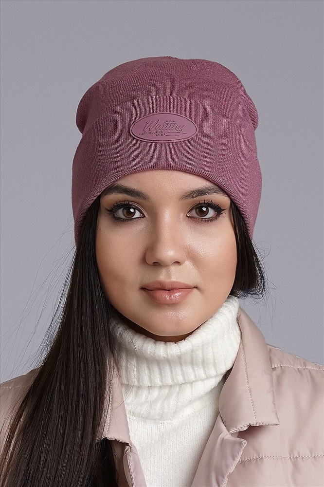 Женская двойная шапка с отворотом, декорирована нашивкой логотип в центральной части. Идеально подойдёт для весенне- осеннего сезона.