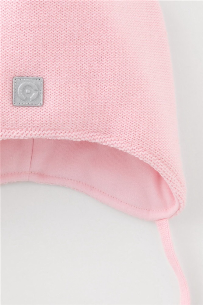 Шапка для девочки из полушерсти на завязках с синтепоновым утеплителем. Подклад из натурального хлопка. Полностью закрывает голову, уши и шею, защищая ребёнка от холодного воздуха и ветра. На макушке помпон. Изделие сохраняет форму и стойкий цвет после многочисленных стирок.