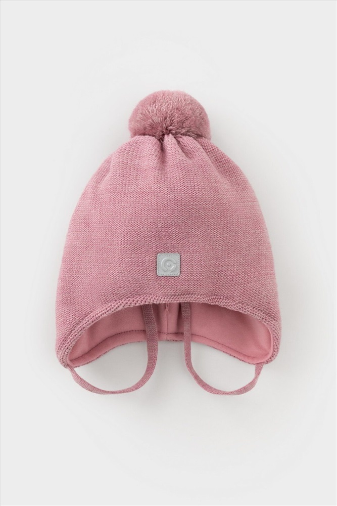 Шапка для девочки из полушерсти на завязках с синтепоновым утеплителем. Подклад из натурального хлопка. Полностью закрывает голову, уши и шею, защищая ребёнка от холодного воздуха и ветра. На макушке помпон. Изделие сохраняет форму и стойкий цвет после многочисленных стирок.