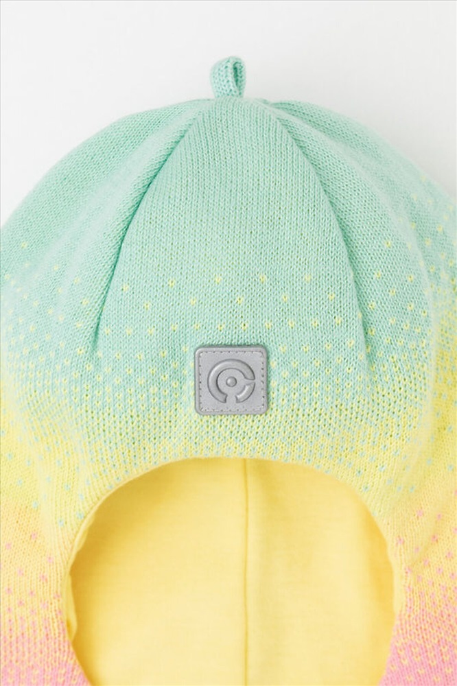 Демисезонная шапка-шлем из смесовой пряжи с добавлением высококачественного гребенного хлопка. Украшен вывязанным узором. Мягкий подклад из трикотажного полотна интерлок. Комфортное прилегание, высококачественные материалы обеспечивают защиту от холода и хороший теплообмен. Светоотражающий элемент обеспечивает безопасность ребенка в темное время суток.