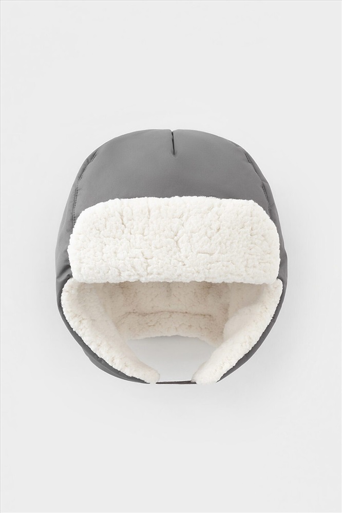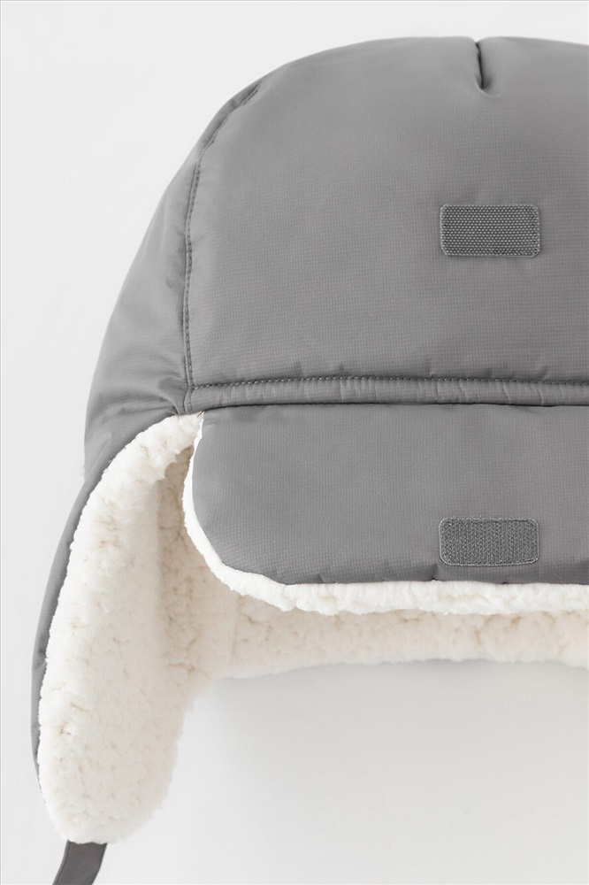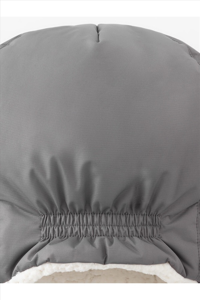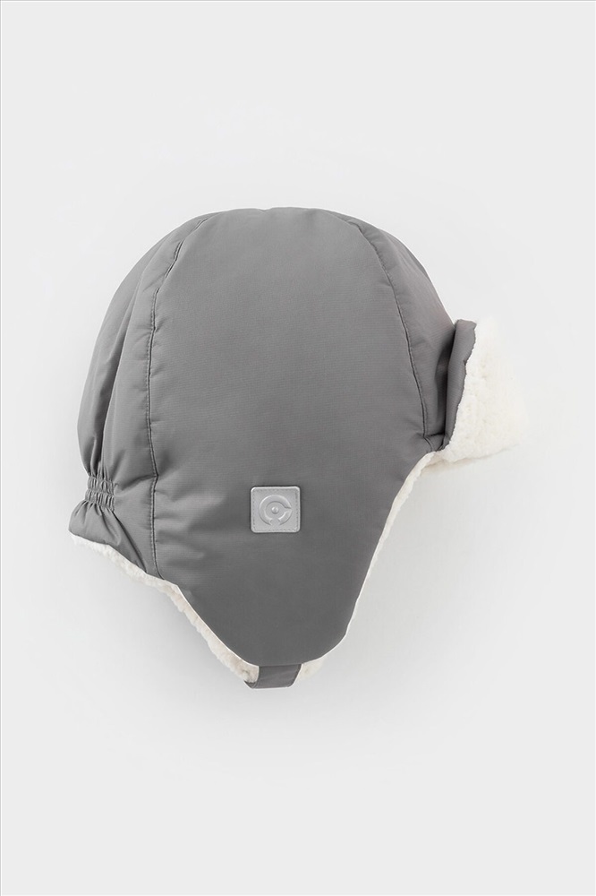 Зимняя шапка детская из однотонной мембранной ткани. Внутри искусственный утеплитель и подклад из мягкого длинноворсового флиса. Застёгивается под подбородком на липучку. Спереди отворот на липучке. На затылке эластичная резинка. Сбоку прикреплён светоотражатель.
