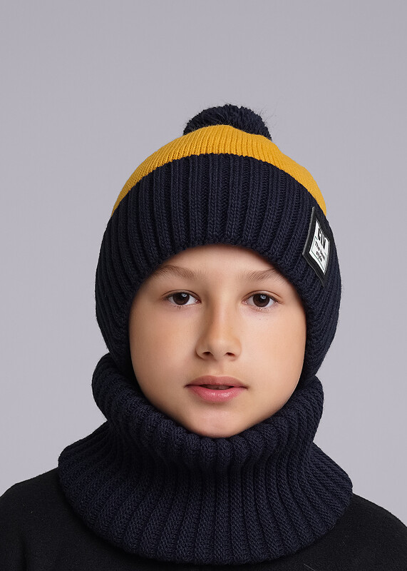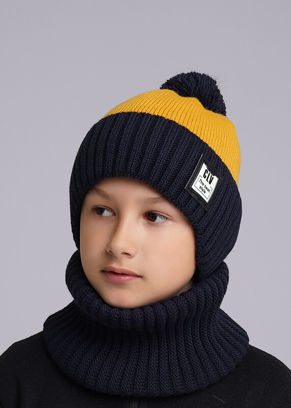 Детская шапка для мальчика, с отворотом и помпоном. Утепление флисом по всей голове, декорирована стильной нашивкой-логотип на отвороте. Отлично подойдёт для холодной зимы.