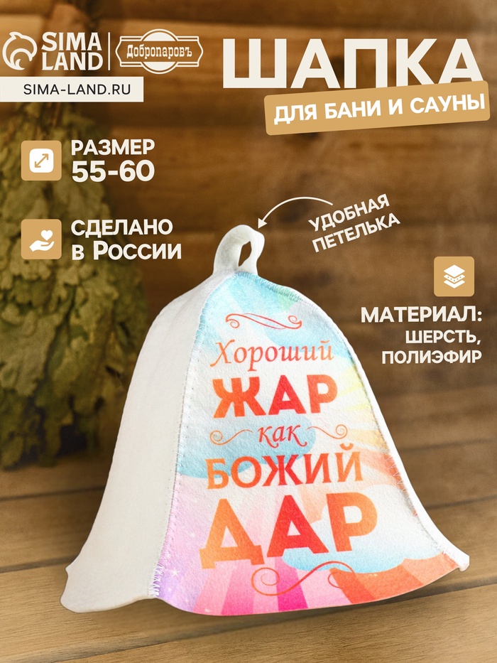 Габариты: 25 x 20 x 1,5 Страна: Россия В боксе: 80 шт Состав: Шерсть 30%, полиэфир 70% Материалы: шерсть, полиэфир Фасовка: по 1 шт Индивидуальная упаковка: Без упаковки Сертификат: Не подлежит сертификации Для кого: Для мужчины, Унисекс, Для женщины Размер: 55, 56, 57, 58, 59, 60 Тематика праздника: Универсальная тематика Материал: Полиэфир, Шерсть Тип рисунка: Принт Содержание шерсти: 30% Вид шапки: С рисунком Цвет: Светлая, Разноцветная Шапка для бани и сауны «Хороший жар, как Божий дар» — идеальное сочетание универсальности и комфорта. Она выполнена из сочетания полиэфира (70%) и шерсти (30%), что обеспечивает оптимальный баланс между долговечностью и теплоизоляцией. Светлая и разноцветная шапка с оригинальным принтом подойдет как мужчинам, так и женщинам. Универсальный размер (55-60) подойдет большинству пользователей. Преимущества