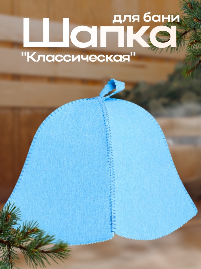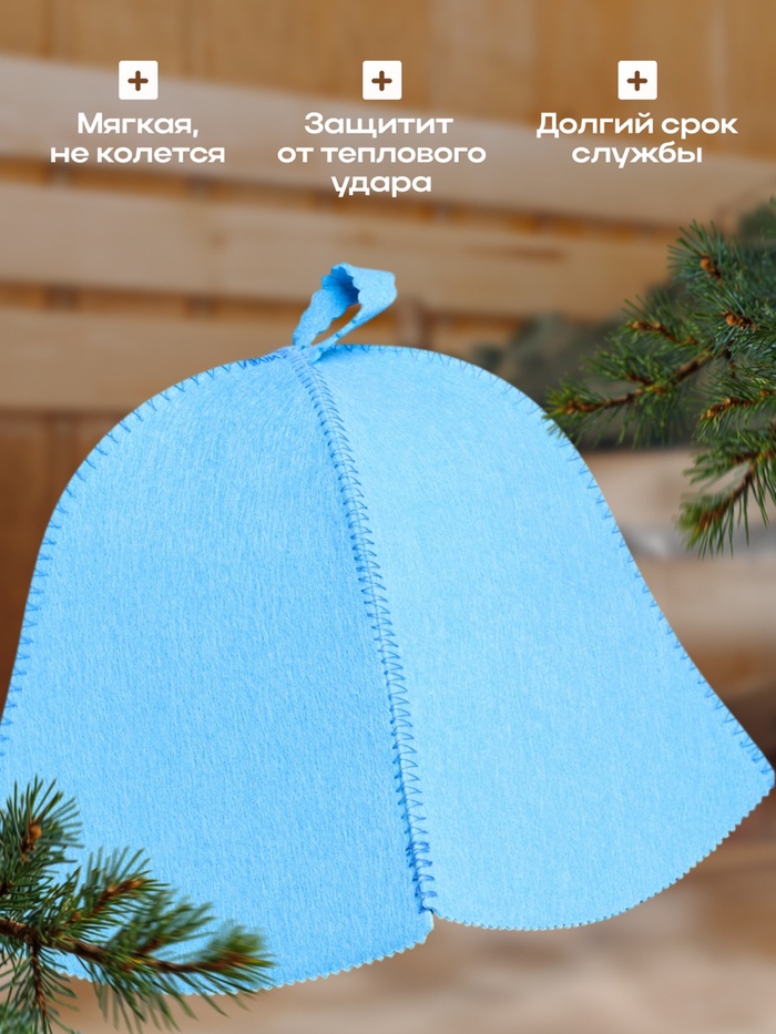 Классическая банная шапка голубого цвета — универсальный аксессуар для защиты от перегрева в парной. Модель без рисунка подходит для регулярного использования в сауне и бане.