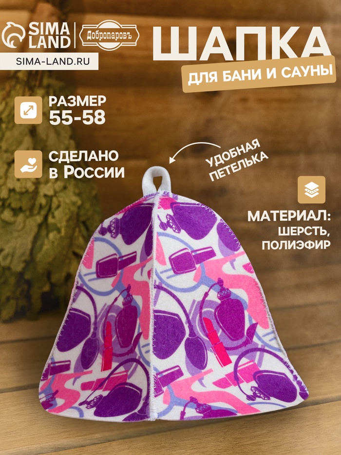 Шапка для бани и сауны «Косметика», полиэфир 70%, шерсть 30%, «Добропаровъ»