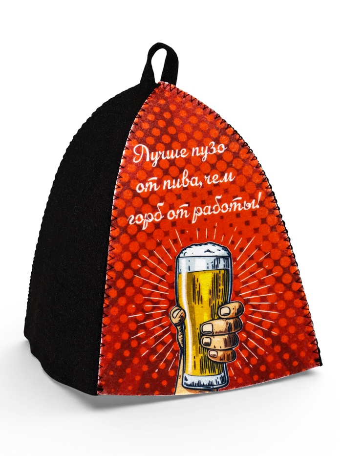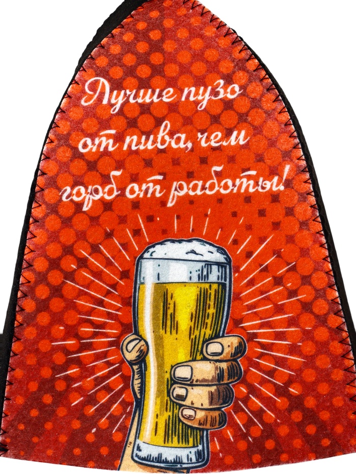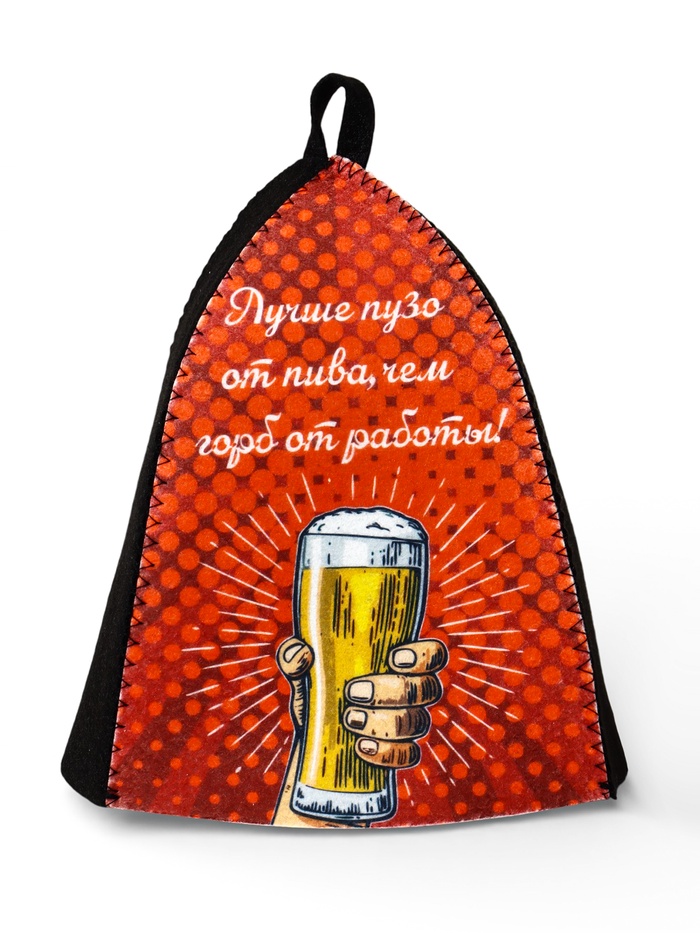 Шапка для бани «Лучше пузо от пива, чем горб от работы» из полиэфира — практичный аксессуар для парной с ярким принтом и юмористической надписью. Подходит для бани и сауны, дополняет атмосферу отдыха и дружеской компании. Модель рассчитана на мужчин и женщин.