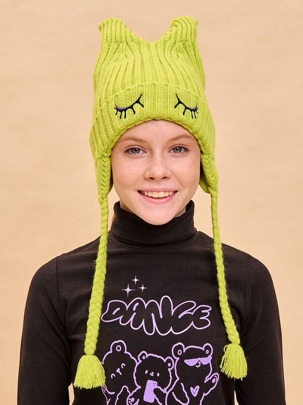 Ваша дочка не любит надевать шапку? Просто у неё не было нашей прикольной шапки-игрушки! С ней сборы на улицу станут весёлыми и радостными! Шапка с забавными вывязанными рожками жирафа и вышитыми на отвороте глазками порадует вашего ребёнка. Модель с отворотом и функциональными цельновывязаными ушками по бокам. В составе ткани 100% акрил — приятный на ощупь материал, тёплый и эластичный. Вещи из акрила легко стирать, они не растягиваются и не мнутся, сохраняют превосходный внешний вид надолго. Прекрасные терморегулирующие свойства помогают сохранять тепло даже при низких температурах. Внутри подкладка из флиса — она мягкая и обеспечивает дополнительную защиту от холода. Шапка имеет форму, которая повторяет контуры головы — она плотно прилегает к голове ребёнка, не сползает. Цельновывязаные ушки по бокам прикрывают уши ребёнка от холода и ветра. На ушках декоративные завязки с кисточками. Такая шапка станет отличным подарком для маленькой модницы!