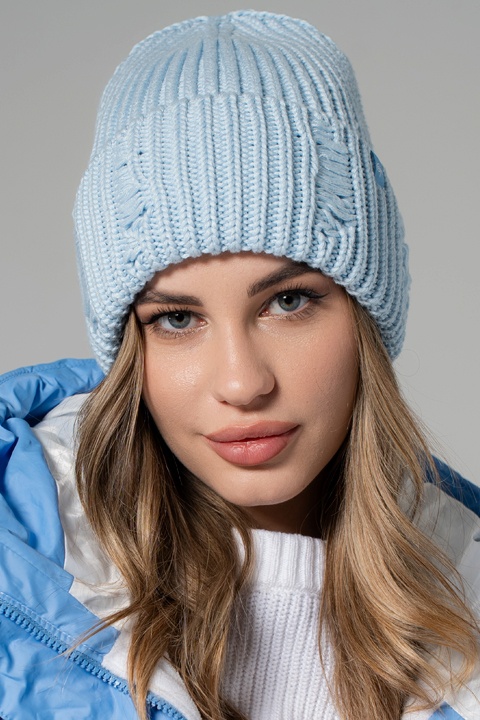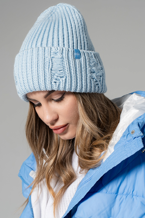 Подклад: Без подклада Тип изделия: Шапка Состав: Хлопок, акрил Место: 2Л3-2-К1 Шапка с декоративными дырочками на отвороте, выполнена из пряжи с хлопком (премиум качества). Вязка плотная и эластичная имеет мягкую текстуру. Комментарии к товару