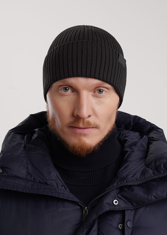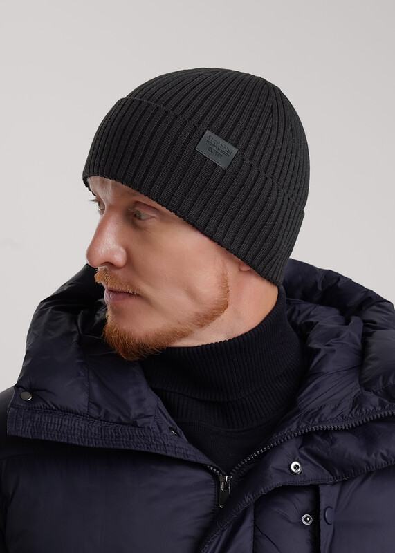 Мужская шапка с отворотом, выполнена ластичным переплетением. Декорирована стильной нашивкой- логотип. Идеальна для осени- весны.