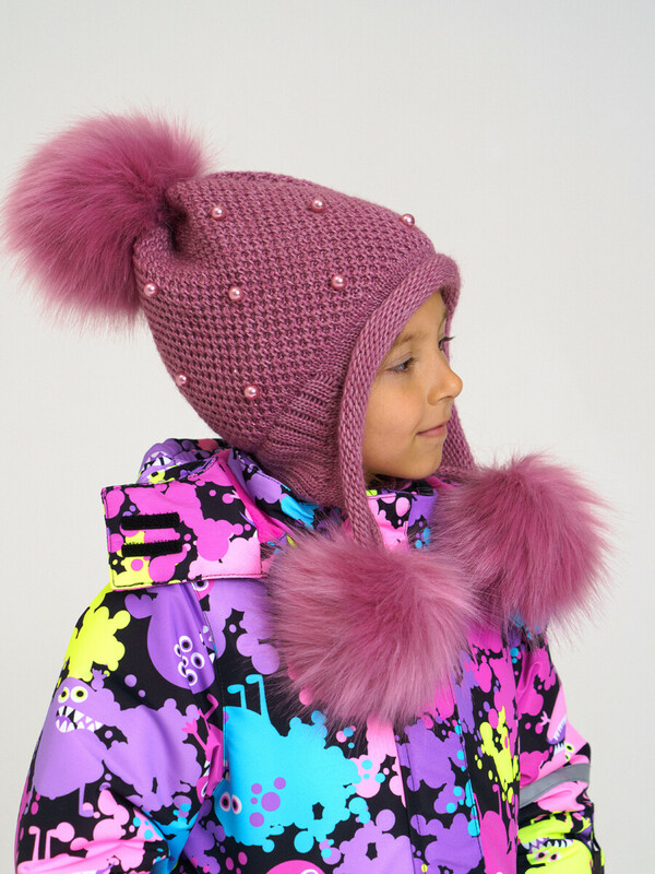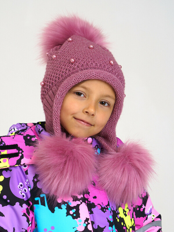 Шапка из вязаного трикотажа с помпоном. Пряжа из акрила: легкая, теплая, гипоаллергенная. Утепленная синтепоном. Дополнительное утепление в области ушей. Подкладка трикотажная с высоким содержанием хлопка 95%. Помпон из искусственного меха.