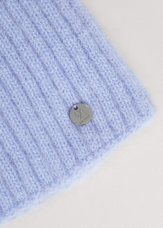 Женская двойная шапка без отворота, связаная ластичным переплетением, выполнена из пряжи с содержанием высококачественной ангоры.