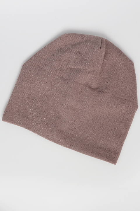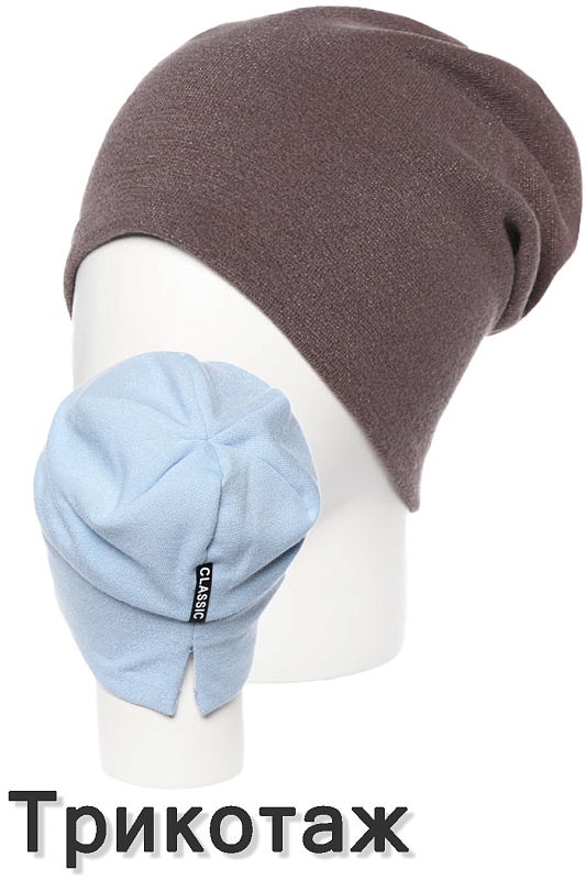 Шапка женская трикотажная на подкладе из хлопкового трикотажа. Сзади модель оформлена складкой закрепленой строчкой и небольшим разрезом шириной 4,5 см.