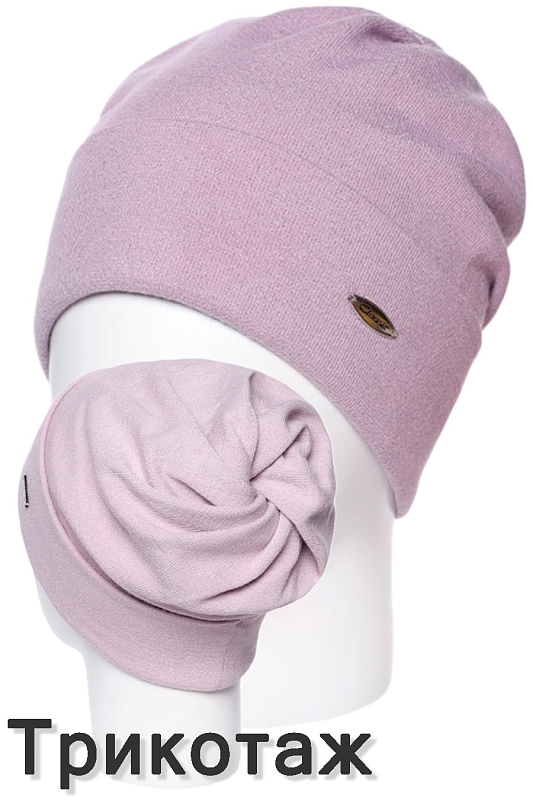 Шапка трикотажная с отворотом на подкладе из хлопкового трикотажа. На макушке оригинальная драпировка - отверстие, поэтому данную модель можно носить в двух вариантах: как бини или под хвост/пучок, смотрите фото.