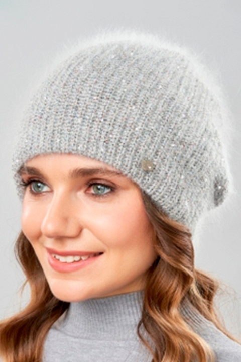 Шапка колпак двойная, длина модели 25см, выполнена из пряжи "Angora" с добавлением нити люрекса и пайеток. Размер: 56-58. Состав: ангора 52%, шерсть 18%, акрил 30%. Производство Россия.