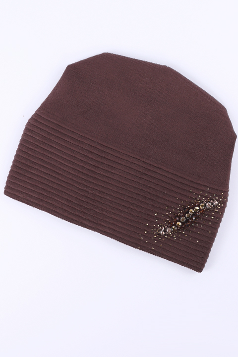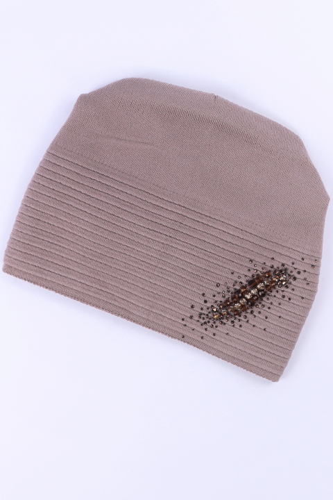 Шапка женская на флисовом подкладе, сзади оформлена драпировка и закреплена строчкой.