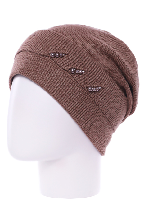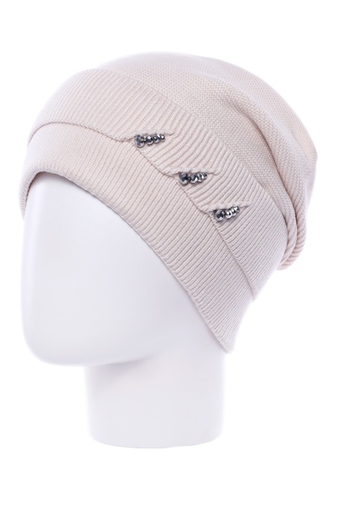 Шапка женская на флисовом подкладе, сзади оформлена драпировка и закреплена строчкой.