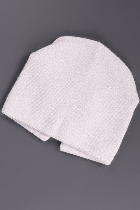 Шапка двойная из мягкой плюшевой пряжи с нитями люрекса. Сзади модель оформлена разрезом 7 см. Вязка плотная, гладкая. Размер: 56-58. Состав: 20% шерсть мериноса, 40% вискоза, 40% нейлон. Производство: Россия.