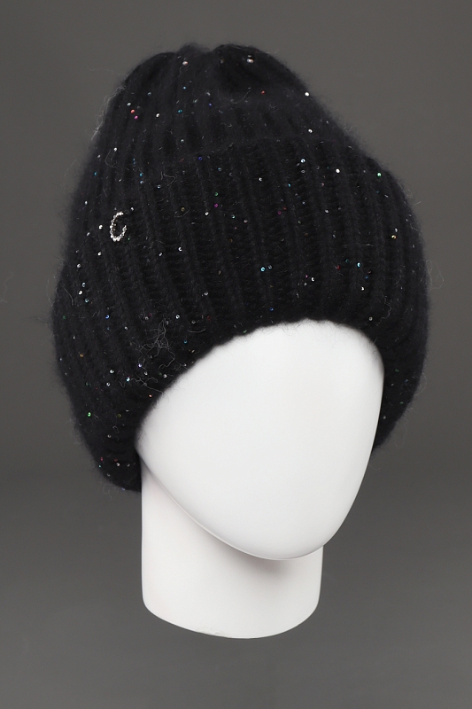 Шапка с двойным отворотом на флисовом подкладе. Выполнена из мягкой, пушистой пряжи с пайетками. Размер: 55-58. Состав: 30% пух енота, 20% шерсть мериноса, 20% лавсан, 30% нейлон. Производство: Россия.