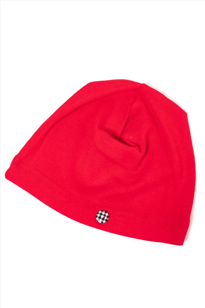 Сезон: Всесезонный Состав: Хлопок 100% Цвет Номенклатуры: красный Детская шапочка из рибаны. В качестве декора сбоку пришита пуговица. Комментарии к товару