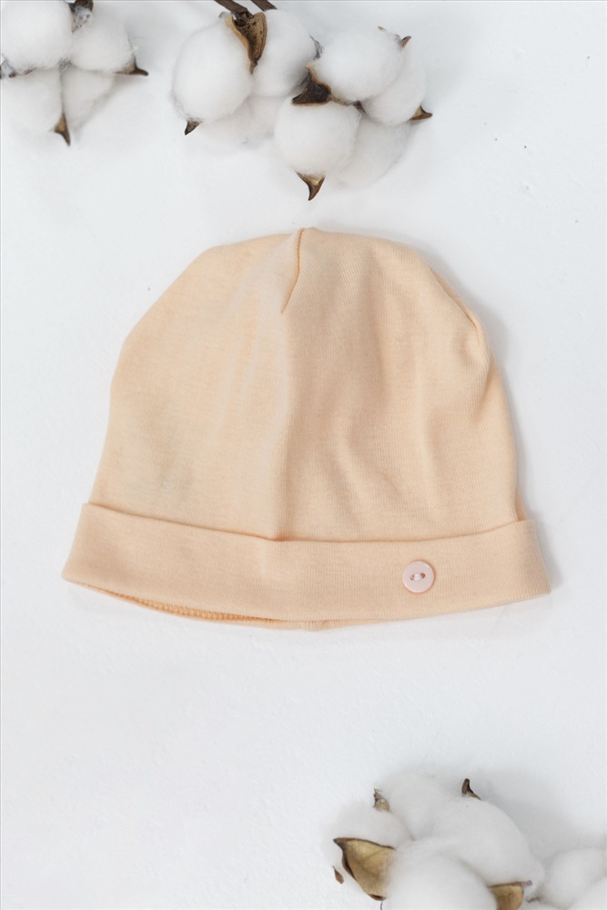 Сезон: Всесезонный Состав: Хлопок 100% Цвет Номенклатуры: персиковый Шапочка выполнена из хлопкового полотна, с отворотом и пуговицей сбоку. Комментарии к товару