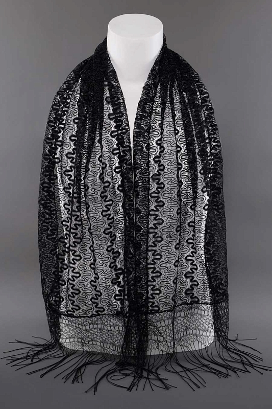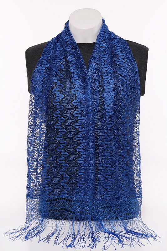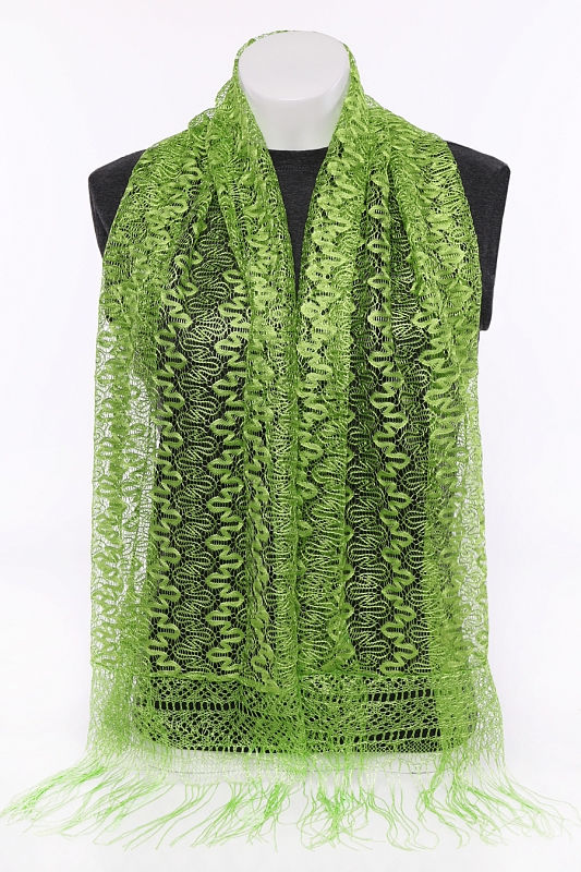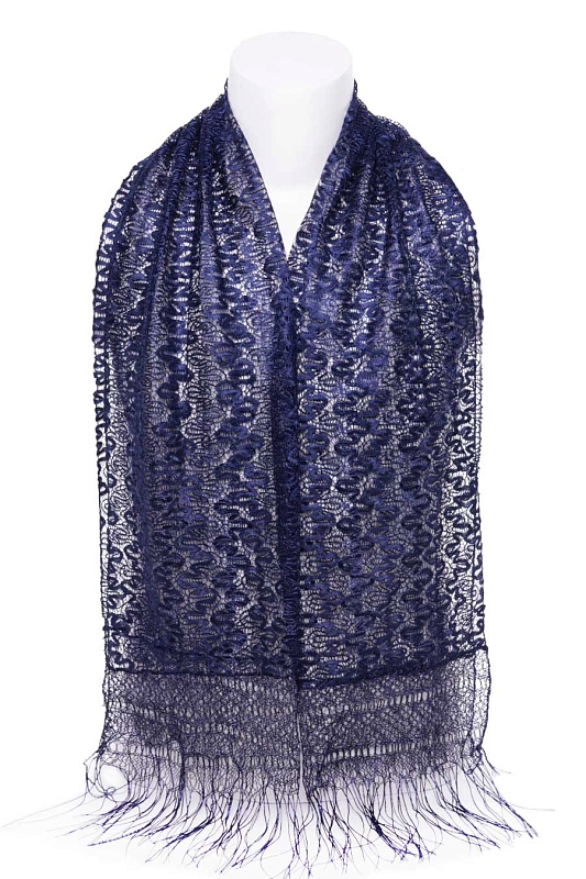 Состав: Полиэстер Место: *9Л4-3-К1 Шарф выполнен из мягкой кружевной ткани. Края шарфа- оверлочный шов, концы - бахрома. Комментарии к товару