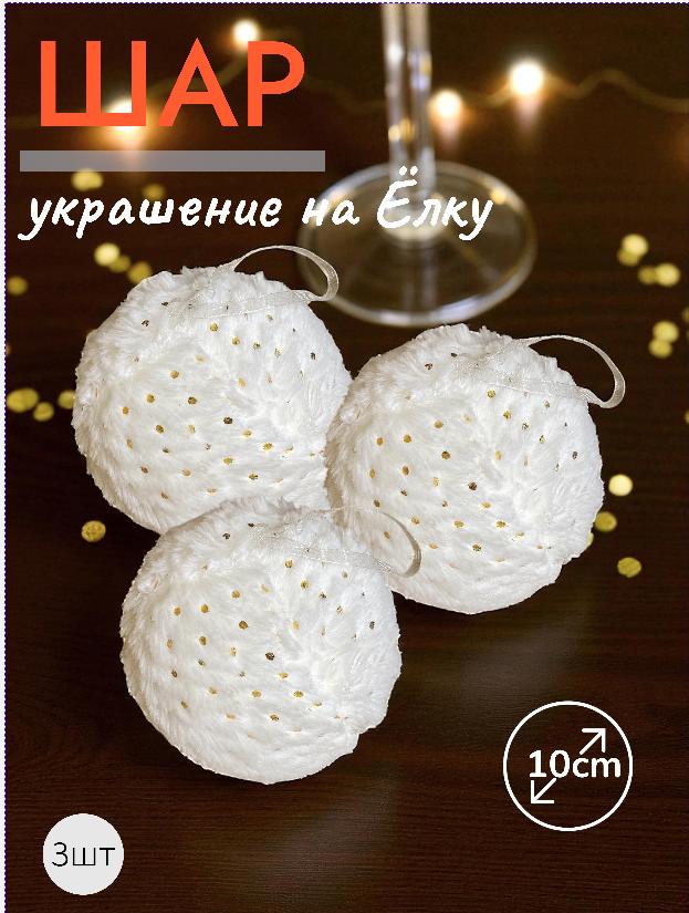 Шары 3штХ10см, украшение на ёлку ручной работы