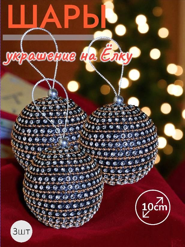 Шары 3штХ10см, украшение на ёлку ручной работы