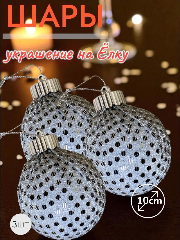 Шары 3штХ10см, украшение на ёлку ручной работы