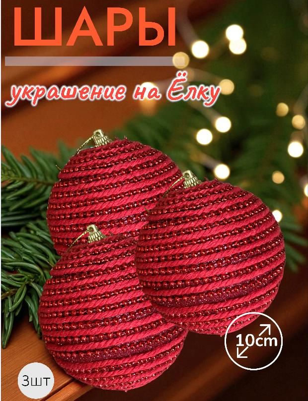 Шары 3штХ10см, украшение на ёлку ручной работы