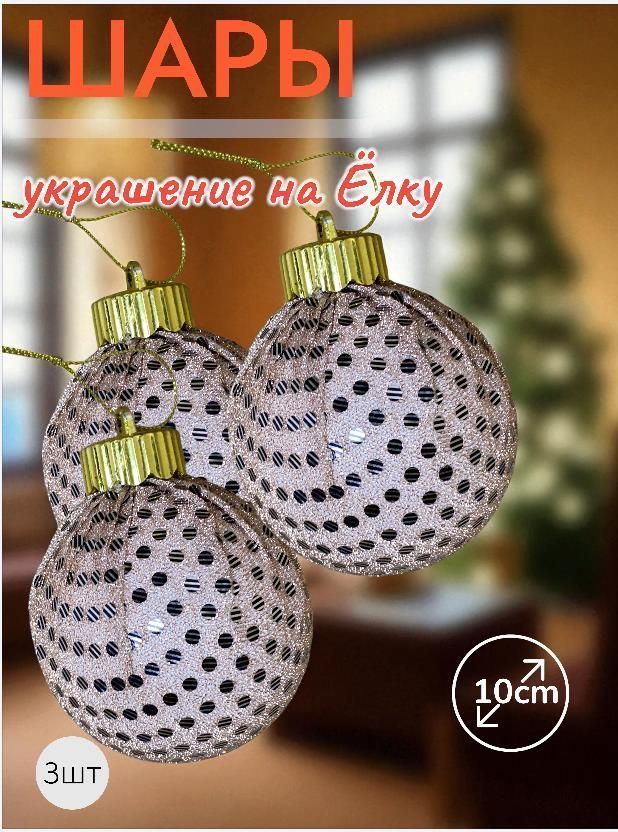 Шары 3штХ10см, украшение на ёлку ручной работы