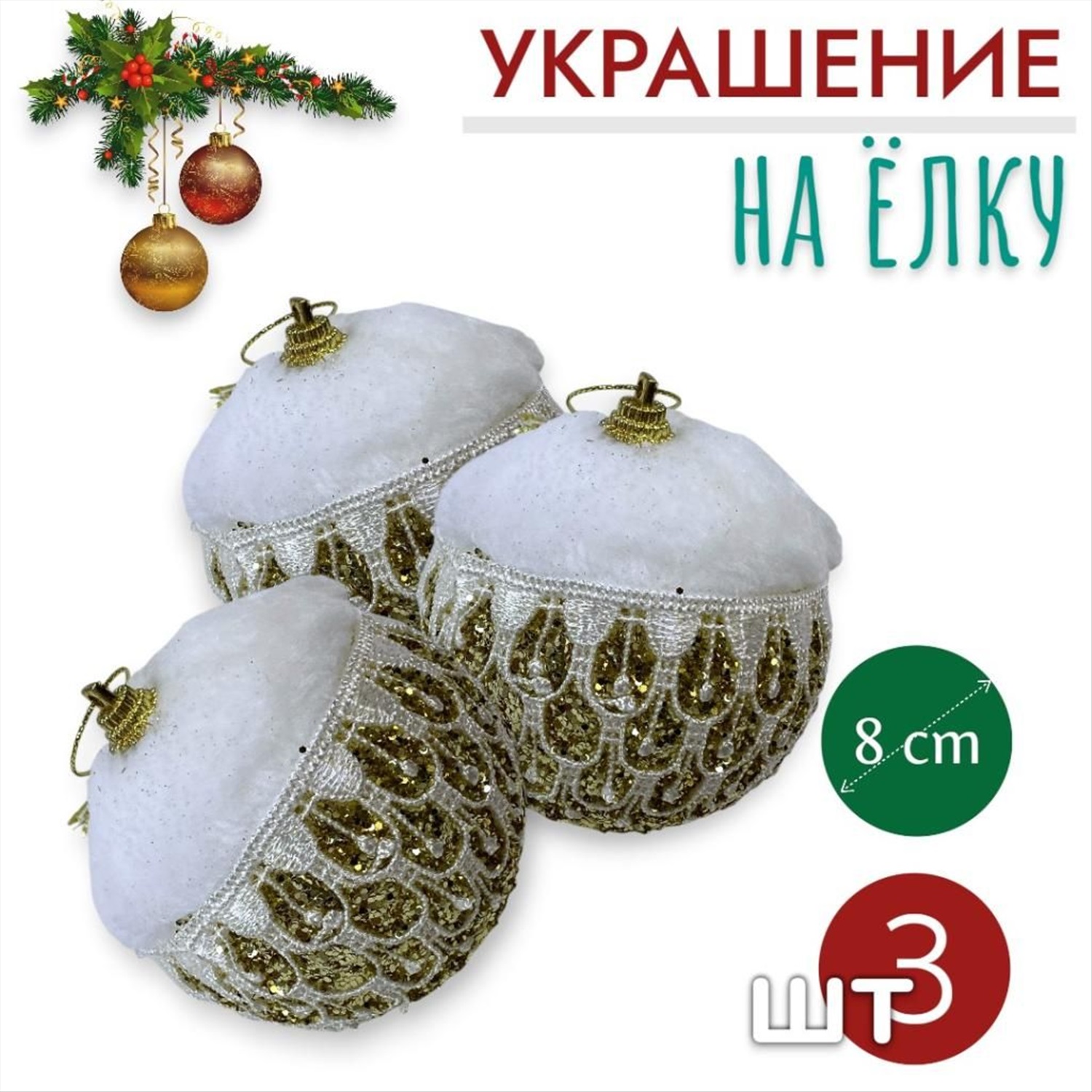 Шары 3штХ8см, украшение на ёлку ручной работы