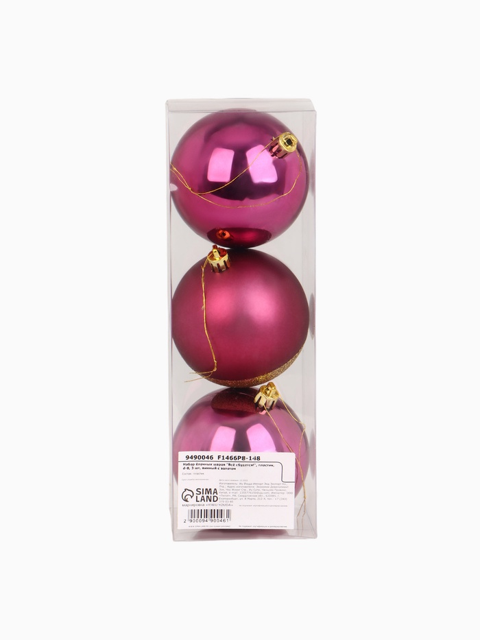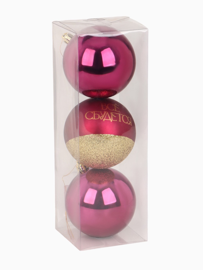 Габариты: 23,5 x 8 x 8 Страна: Китай В боксе: 60 набор Состав: Пластик Материалы: пластик Фасовка: по 1 набор Индивидуальная упаковка: Пластиковая коробка Габариты товара: 8 см × 8 см × 24 см Сертификат: Не подлежит сертификации Набор: Да Цвет: Розовый Высота, см: 24 В наборе, шт.: 3 Диаметр шара, см: 8 Символ года: Нет Тематика праздника: Новый год Материал: Пластик Стиль: Фьюжн Фиксированная цена: Да Комментарии к товару