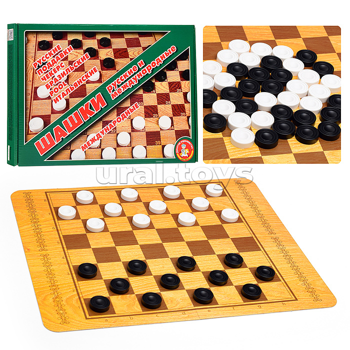 Код: 027486 Страна производитель: Россия Размеры упаковки: 37 x 24 x 4 см Количество в коробке: 5 В наборе: - двухстороннее игровое поле 1 шт. - шашки 40 шт. Материалы: картон, полимерный материал. Соответствует требованиям безопасности продукции. Для детей от 3 лет. Комментарии к товару