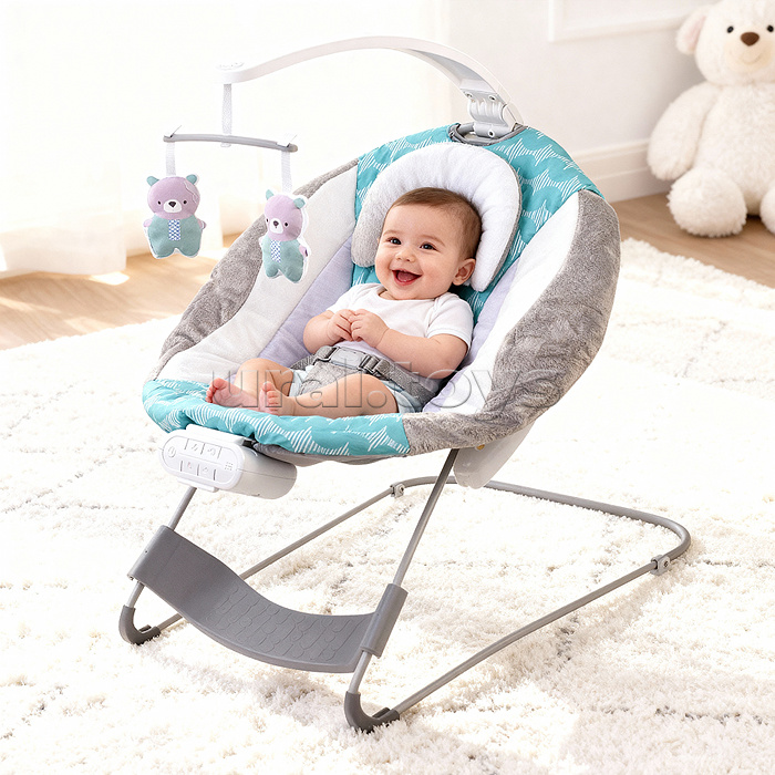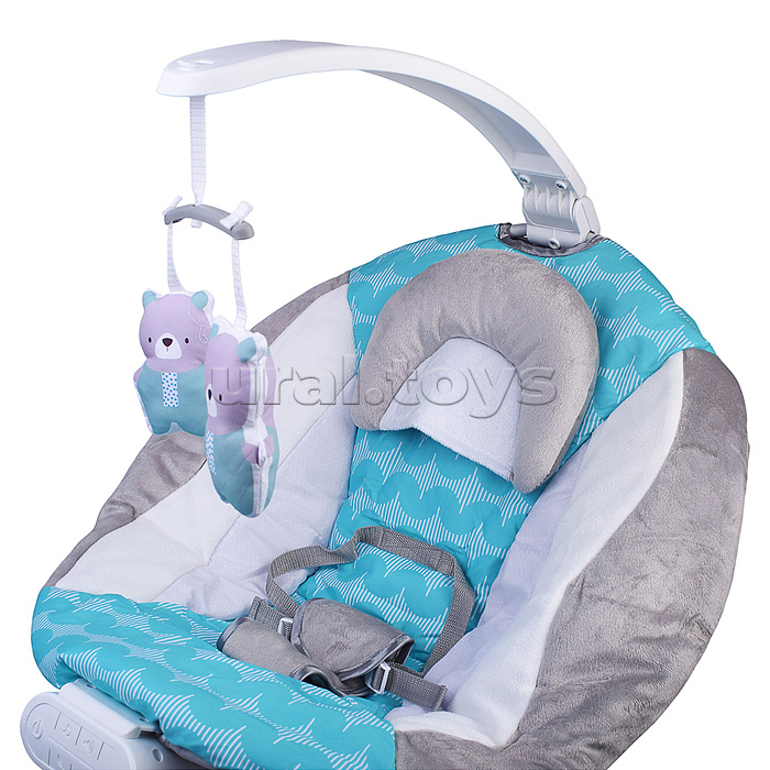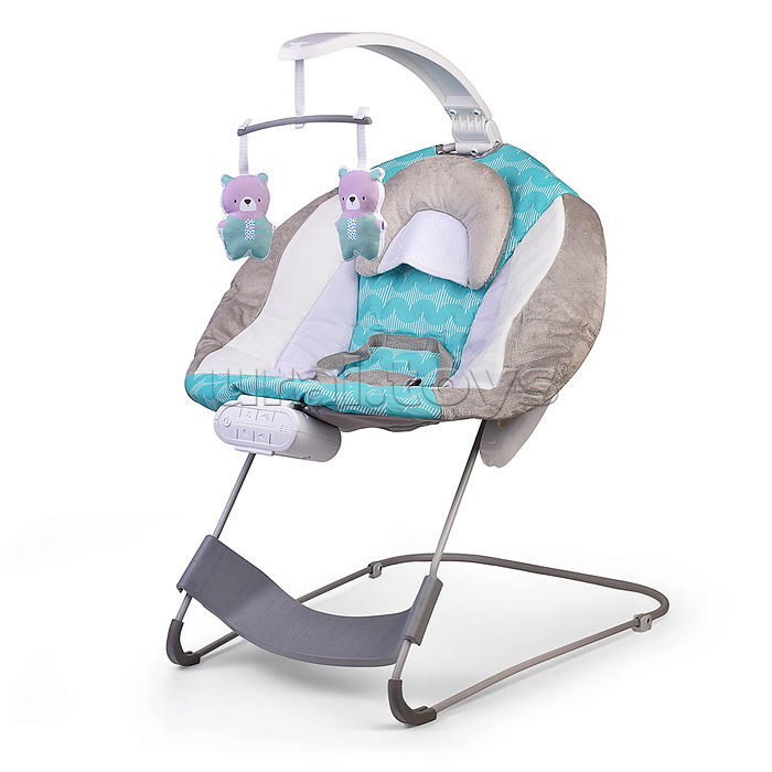 • Размеры: 57х72х80 см. • Трёххточечный ремень безопасности. • Максимальная нагрузка: 9 кг. • В комплекте 2 подвесные игрушки. • Съёмный модуль вибрации. • Функции модуля: - колыбельные мелодии. - звуки природы. - регулировка громкости. - вибрация шезлонга. • Модуль работает от 4-х батареек "АА" (не входят в комплект)
