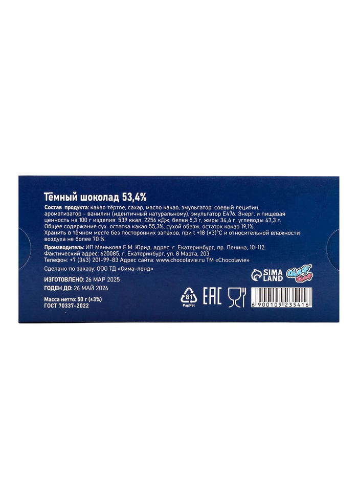 Сладкий символ рождественского настроения: Этот шоколад перенесёт вас в атмосферу зимнего волшебства. Разломите плитку за просмотром рождественских фильмов или подарите близким — тематический дизайн и сбалансированный вкус станут приятным напоминанием о праздничных традициях. Комментарии к товару
