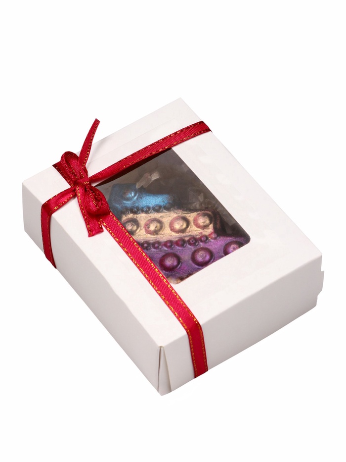 Страна: Россия В боксе: 120 шт Состав: См. на упаковке Материалы: см. на упаковке Фасовка: по 1 шт Индивидуальная упаковка: Цветная картонная коробка Сертификат: ЕАС Белки, г: 2 Жиры, г: 33 Углеводы, г: 61 Вес нетто, г: 80 Энергетическая ценность, ккал: 550 Символ года: Нет Тематика праздника: Новый год, Рождество Форма: Фигурка Вид шоколада: Кондитерская глазурь Добавки: С ванилью Фиксированная цена: Да Классика зимнего праздника в шоколаде! Шоколадная фигурка — это уютное лакомство из кондитерской глазури, которое воссоздает атмосферу домашнего Нового года. Фигурка с узором в народном стиле напоминает о традиционных украшениях и семейном тепле.