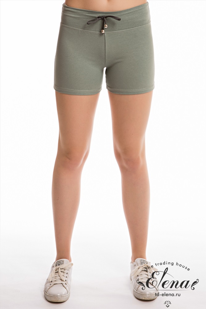 Женские шорты выполнены из футер петли ярких расцветок. Силуэт облегающий, пояс широкий со шнурком. Без карманов.