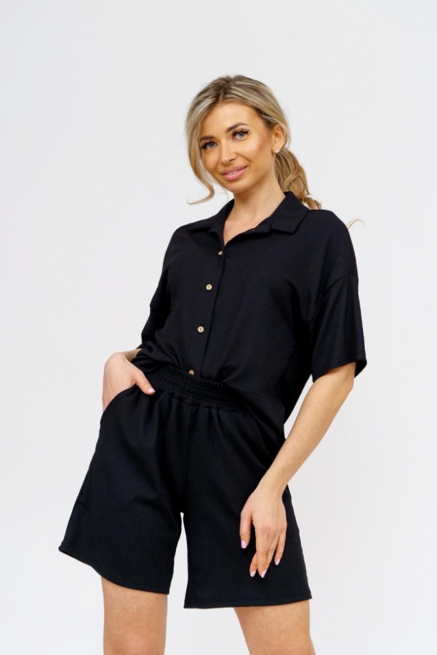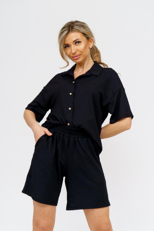 Модные женские шорты - бермуды с завышенной линией талии выполнены из легкого струящегося материала с жатой структурой. Одежда из ткани жатка - это новинка и тренд сезона. Пояс шорт выполнен на специализированной поясной машине, что добавляет изделию большую износостойкость и эстетический внешний вид. По бокам, для удобства, расположены вместительные карманы. Изделие из жатки имеет много положительных качеств: нежность и лёгкость, высокая прочность, воздухопроницаемость. Легкие шорты с высокой посадкой создадут модный образ для любой девушки. С шортами из жатки Вы создадите себе, как спортивный или повседневный образ на выход, так и универсальный вариант для дома и сна.