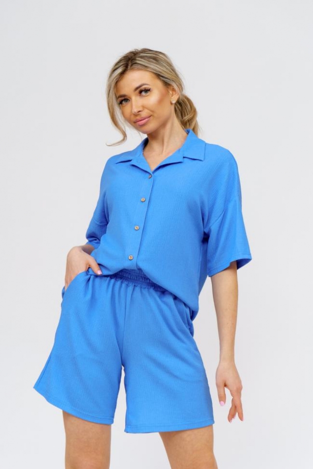 Модные женские шорты - бермуды с завышенной линией талии выполнены из легкого струящегося материала с жатой структурой. Одежда из ткани жатка - это новинка и тренд сезона. Пояс шорт выполнен на специализированной поясной машине, что добавляет изделию большую износостойкость и эстетический внешний вид. По бокам, для удобства, расположены вместительные карманы. Изделие из жатки имеет много положительных качеств: нежность и лёгкость, высокая прочность, воздухопроницаемость. Легкие шорты с высокой посадкой создадут модный образ для любой девушки. С шортами из жатки Вы создадите себе, как спортивный или повседневный образ на выход, так и универсальный вариант для дома и сна.