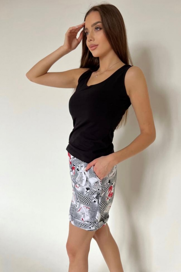 Расцветки: Карты Ткань: Футер с лайкрой 2-х нитка Состав: Хлопок 72%, пэ 20%, эластан 8% Размеры: 42