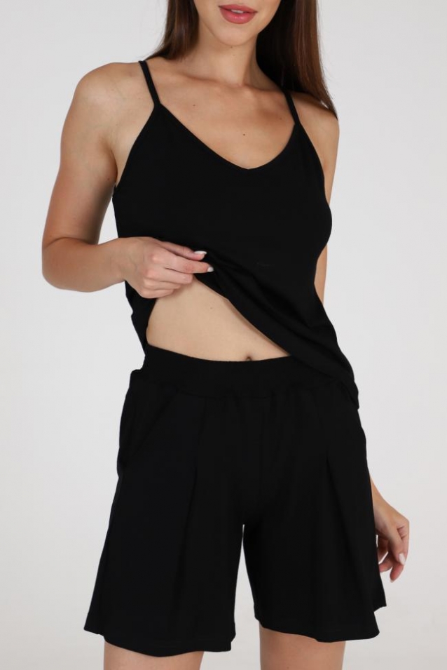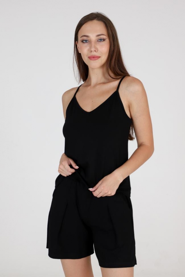 Шорты на поясе, с боковыми карманами. В верхней части передних половинок по шву притачивания пояса расположены складки.