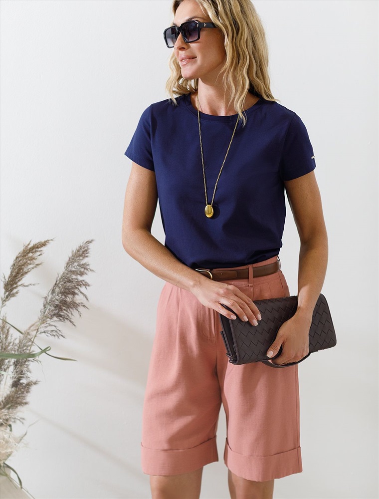 Состав: 70%Лиоцелл (Вис) 30%ПЭ; Параметры модели на первом фото: Рост 172, бюст 88, талия 64, бедра 88 Шорты-бермуды выполнены из плотного лиоцелла. Модель дополнена карманами и поясом со щлевками под ремень. Ткань изделия отлично держит форму, плавно драпируется и не просвечивает. В теплое время года приятно охлаждает кожу. Добавление синтетических волокон в составе изделия, предотвращает сминаемостьи поддерживает формоустойчивость. Брюки сочетаются в костюме с топом D23.063 и блузкой D29.266, D29.267 и жилетом D27.002