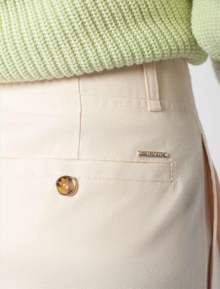 Состав: 70%Лиоцелл (Вис) 30%ПЭ; Параметры модели на первом фото: Рост 172, бюст 88, талия 64, бедра 88 Шорты-бермуды выполнены из плотного лиоцелла. Модель дополнена карманами и поясом со щлевками под ремень. Ткань изделия отлично держит форму, плавно драпируется и не просвечивает. В теплое время года приятно охлаждает кожу. Добавление синтетических волокон в составе изделия, предотвращает сминаемостьи поддерживает формоустойчивость. Брюки сочетаются в костюме с топом D23.063 и блузкой D29.266, D29.267 и жилетом D27.002
