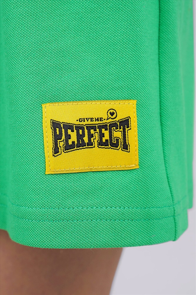 Прямые шорты в трендовом зеленом оттенке выполнены из пике - приятный и дышащий материал. Спереди лаконичная нашивка. Эластичный пояс, регулировка шнуром. Сочетайте модель с однотонными или принтованными футболками из коллекции.