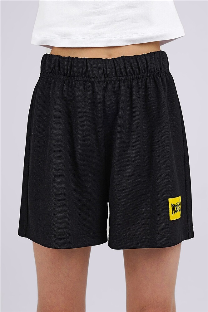Прямые шорты в трендовом зеленом оттенке выполнены из пике - приятный и дышащий материал. Спереди лаконичная нашивка. Эластичный пояс, регулировка шнуром. Сочетайте модель с однотонными или принтованными футболками из коллекции.