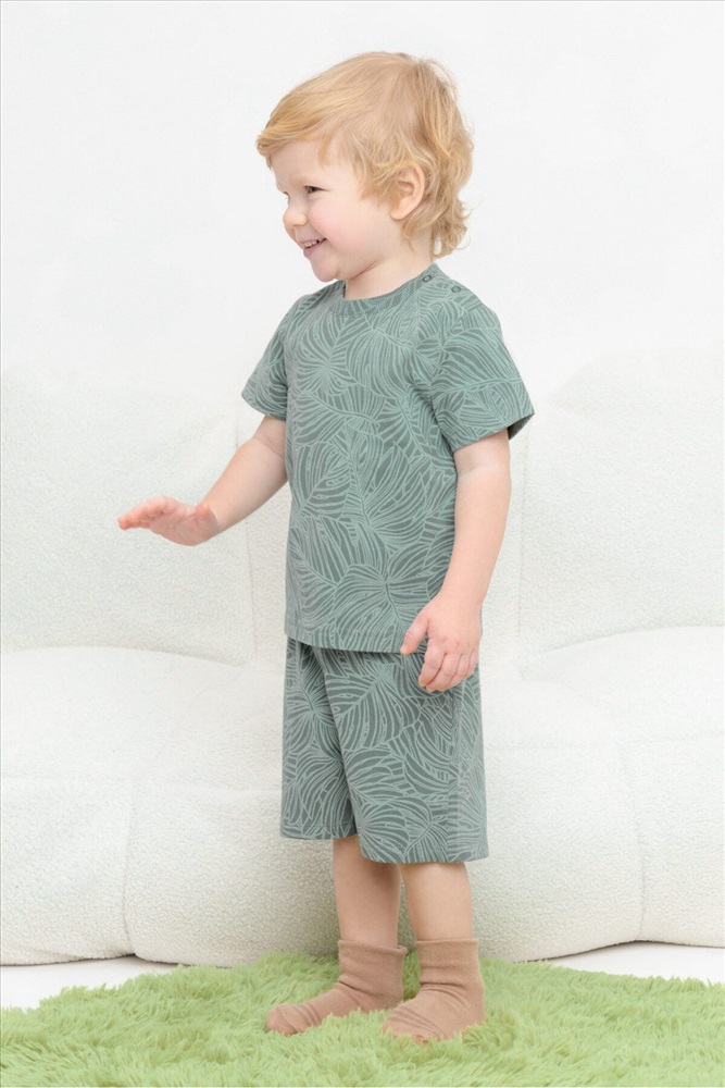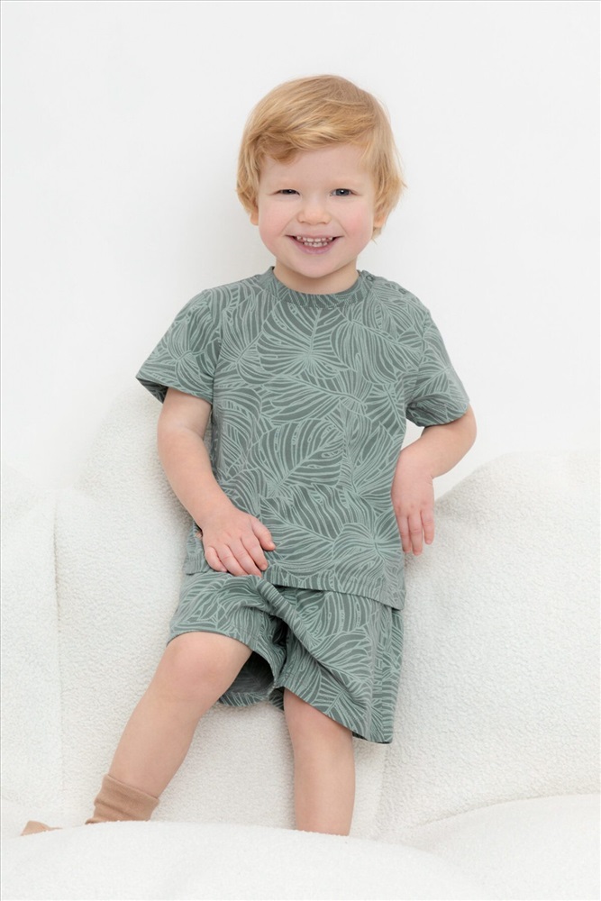 Легкие трикотажные шорты для мальчика из набивного высококачественного хлопка. Эластичный пояс регулируется при помощи шнурка.