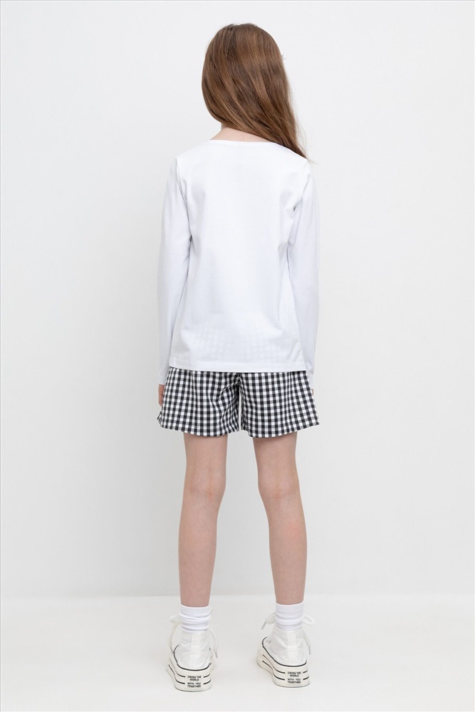 Трикотажные объемные шорты для девочки из набивного петельчатого футера. Пояс по спинке на резинке, по бокам два удобных кармана. Оригинальная набивка выполнена из стойких текстильных гипоаллергенных красителей.