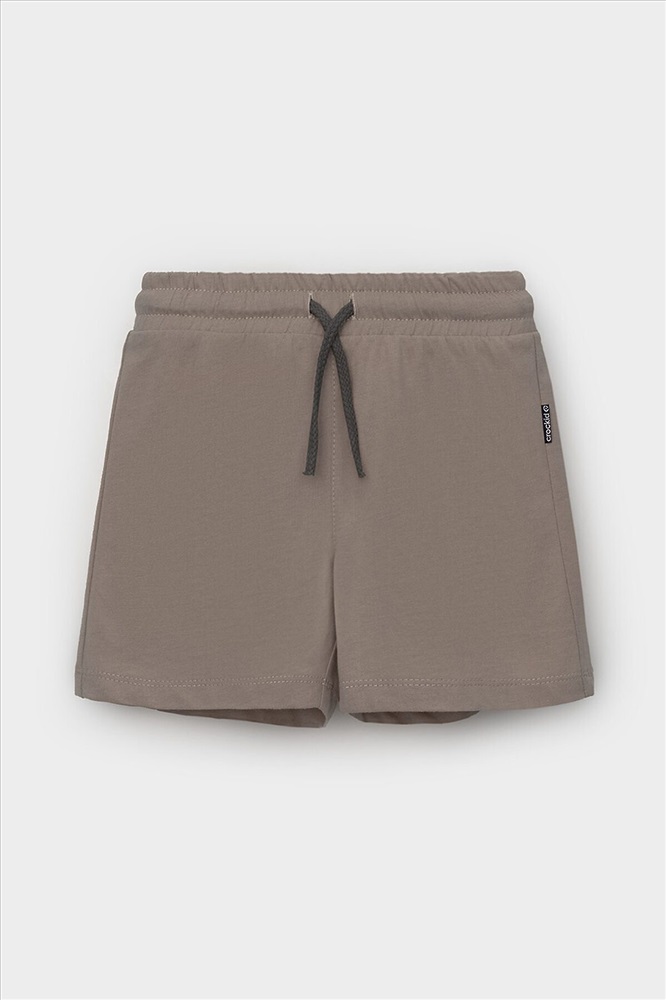 Легкие трикотажные шорты для мальчика из высококачественного хлопка. Эластичный пояс регулируется при помощи шнурка.