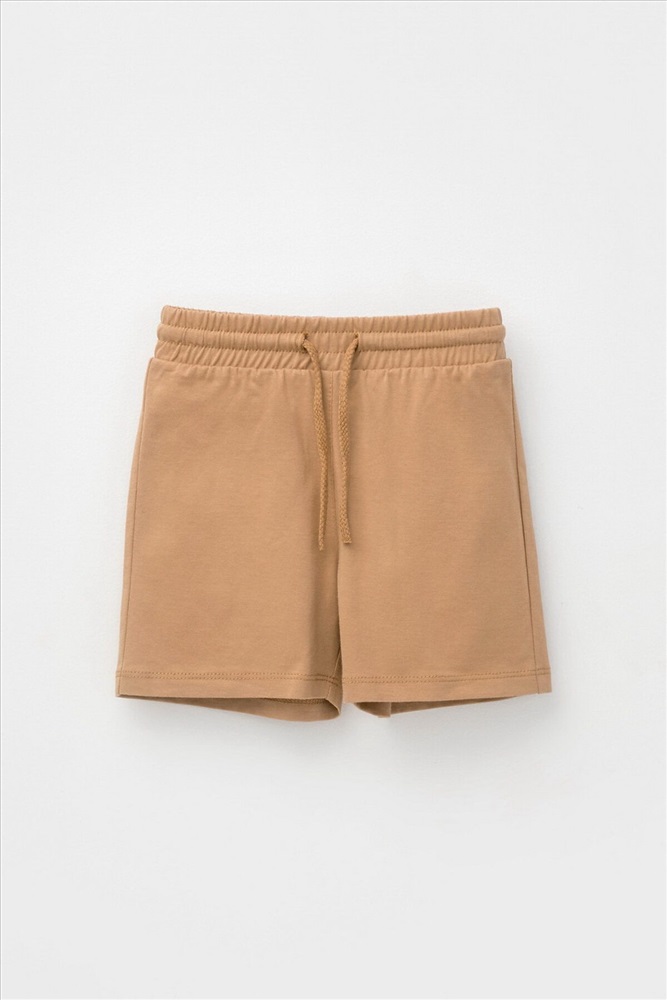 Легкие трикотажные шорты для мальчика из высококачественного хлопка. Эластичный пояс регулируется при помощи шнурка.